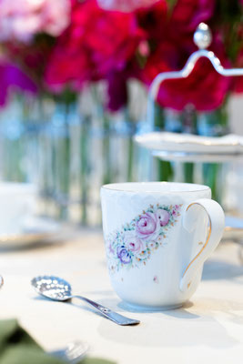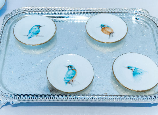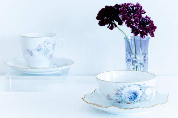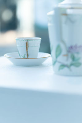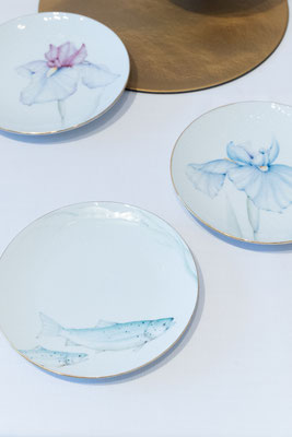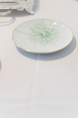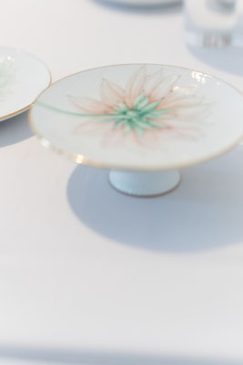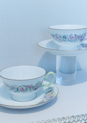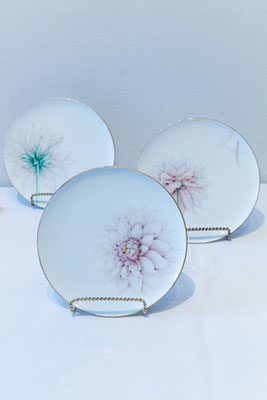 プレート、カップ&ソーサーのセットを制作していただきました。同じプレートを使い、デザインはそれぞれに。