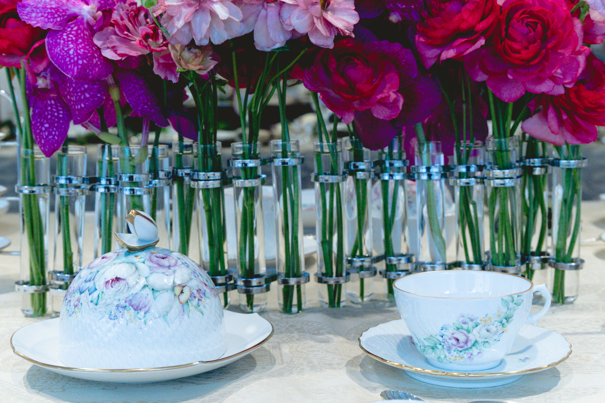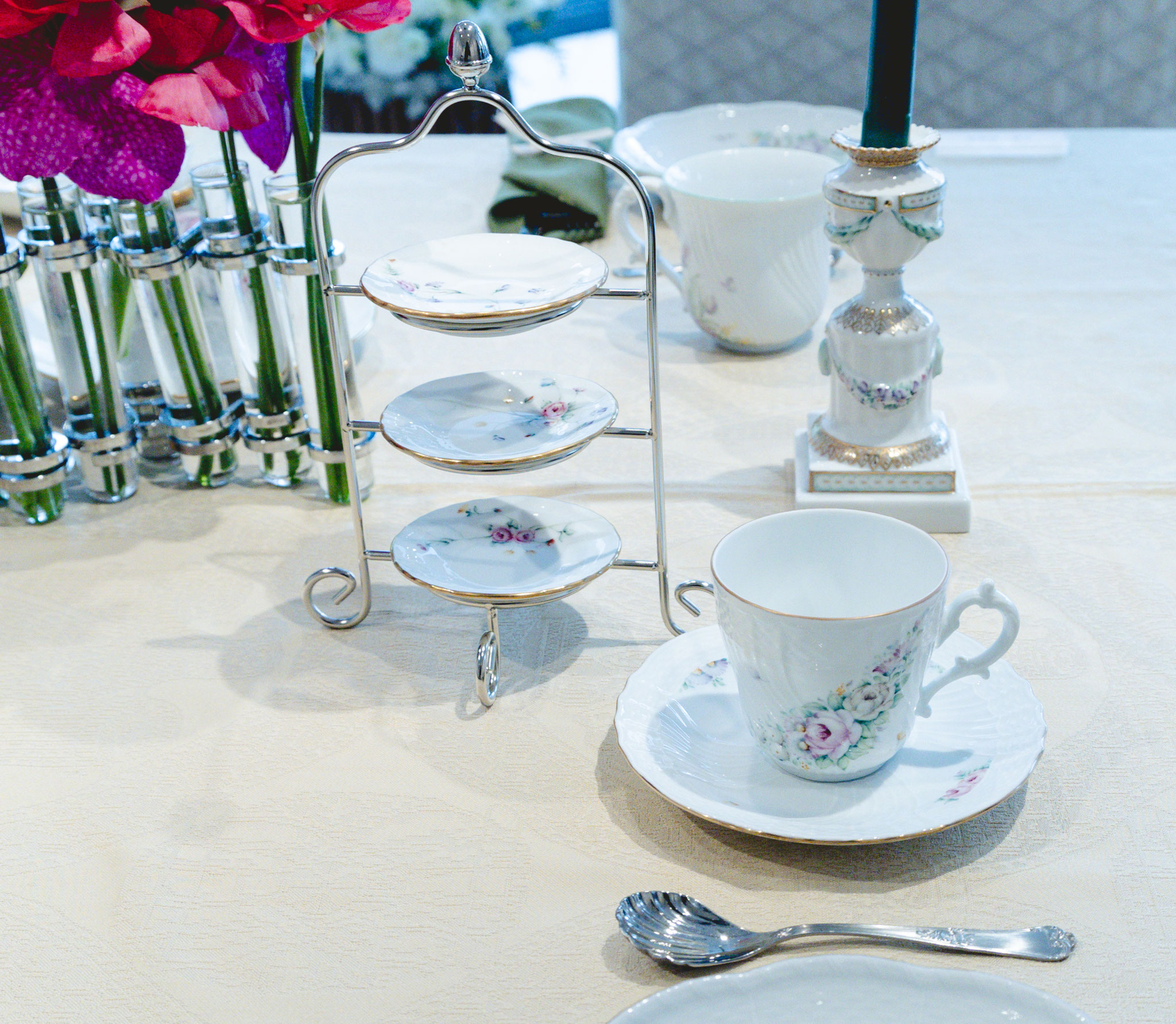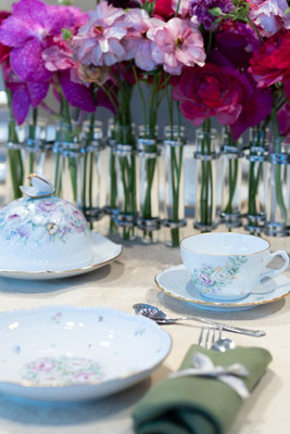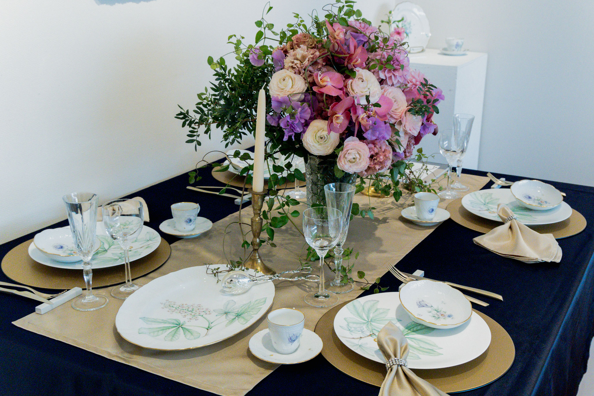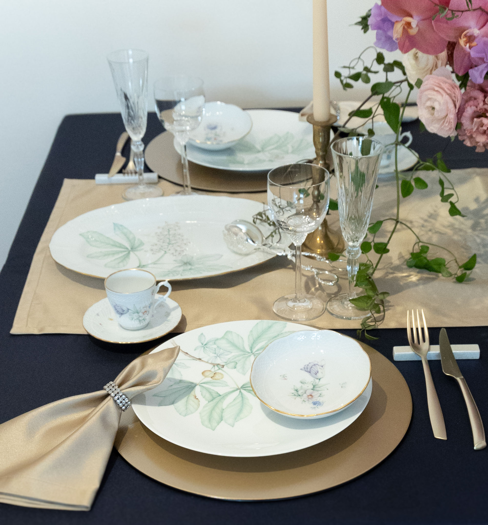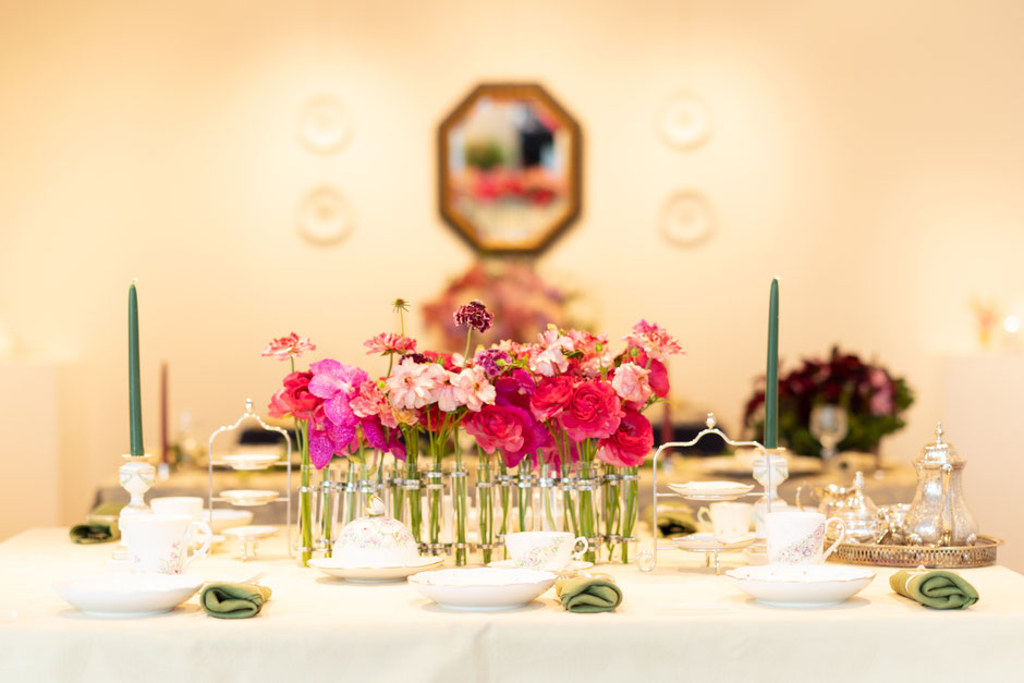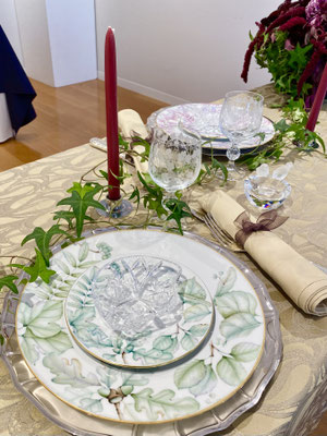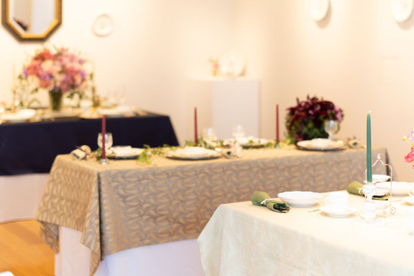 世界観の目指すところは一致しているので、デザインは異なりますが統一感あるテーブルセッティングになりました。
